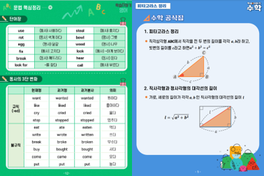 강의 영상을 기반으로 한 강의 교재(pdf) 및 부가학습자료(영어 단어장, 수학 공식집), 강의음성파일을 통해 스스로 복습하며 기초를 탄탄하게 쌓을 수 있습니다